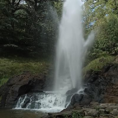 Nous avons pu faire une belle promenade dans le parc, découvrir les 2 cascades créées grâce aux vannes de décharge du barrage, ainsi que la gerbe, pour terminer par la visite de la Galerie des Robinets. Au départ, un étonnant spectacle son et lumière dévoile cette galerie de 60 mètres de long qui renferme le secret de l’alimentation principale en eau et qui mène aux trois Robinets. Ceux-ci permettaient de libérer dans un fracas assourdissant 600 litres d’eau par seconde et par robinet.