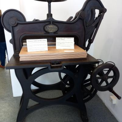 La suite de la visite a consisté à regarder les nombreuses machines à imprimer depuis la presse à bras, celle au pied, pour ensuite laisser la place aux machines mécanisées après la découverte de l’électricité.
