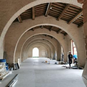 Le bâtiment est sur deux étages avec une coursive à l’extérieur.