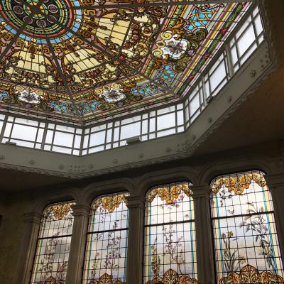 Vaste demeure à la façade blanche, elle se distingue par sa verrière et ses vitraux Art nouveau, dont le plus célèbre est inspiré par la Semeuse d'Eugène Grasset qui servit de monogramme à la librairie Larousse pendant prés de 50 ans avant d'être modernisé.