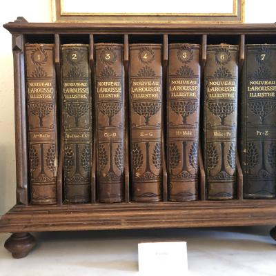 Sur le manteau de l'une des cheminées du rez-de-chaussée, on peut voir le dessin tel qu'il figure encore de nos jours sur la page de garde des dictionnaires Larousse.