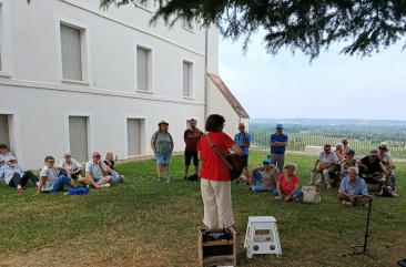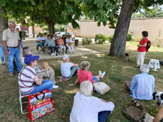 Daniel Chavaroche, périgourdin, qui manie le français et l’occitan, nous a parlé des troubadours dont le célèbre Marcabru, originaire d’Auvillar ; puis il a conté une histoire de gabarriers sur la Dordogne, petit clin d’œil aux gabarriers d’Auvillar qui ont connu des situations similaires.