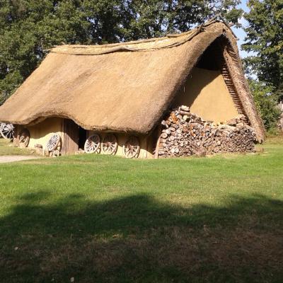 Pour terminer, nous avons visité le Village gaulois situé sur la commune. Imaginé et entrepris par une dizaine de copains passionnés par l’histoire de nos ancêtres, cet Archéosite s’étend sur 6 hectares avec la reconstitution archéologique d’une vingtaine de bâtiments. Il reproduit fidèlement, en s’appuyant sur les dernières recherches, les constructions en bois, en terre crue et les toitures en chaume de l’habitat gaulois.