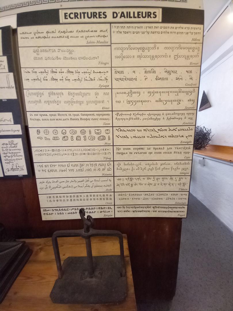 A Montolieu nous avons visité le Musée des Arts et Métiers du Livre où une guide conférencière très intéressante nous a raconté l’histoire de l’écriture de 3500 av. J.C. à l’écriture contemporaine. Dans la préhistoire les dessins étaient déjà une forme d’écriture, on les retrouve en Mésopotamie ou en Egypte, puis les Phéniciens inventent l’alphabet qui se diffuse autour de la Méditerranée. Suivront le grec, le latin et toutes les autres écritures.