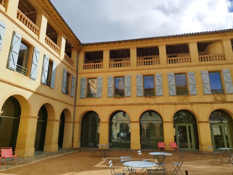 Puis, nous nous sommes rendus à la Médiathèque installée en 2008 dans un ancien couvent, dont il reste encore une partie à rénover, et la cour et les jardins à aménager.