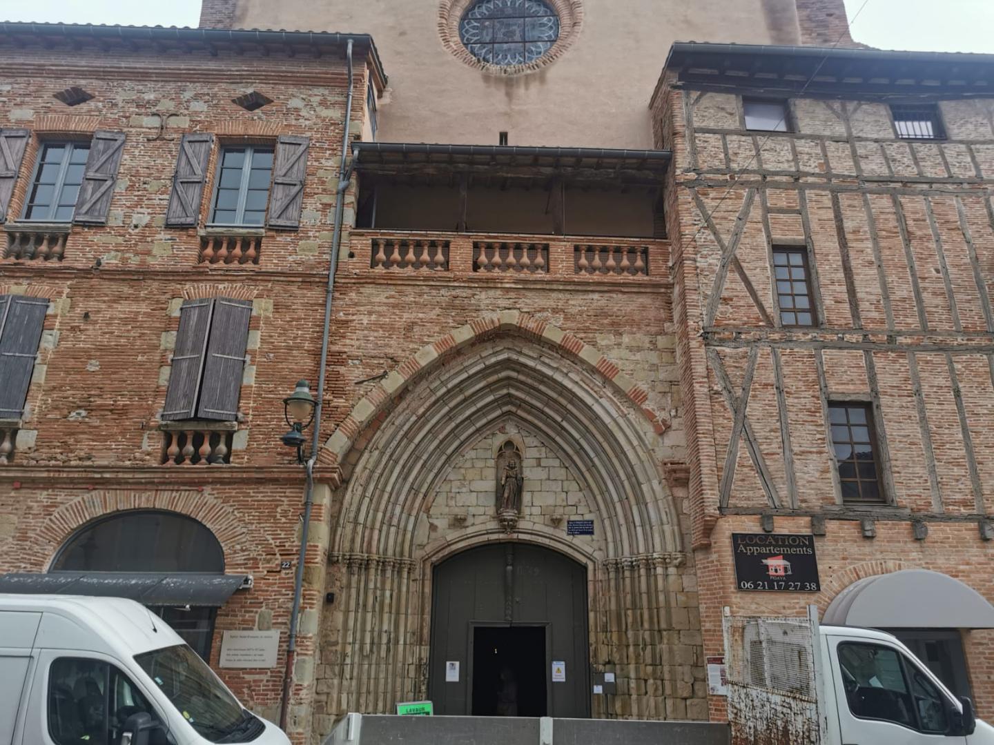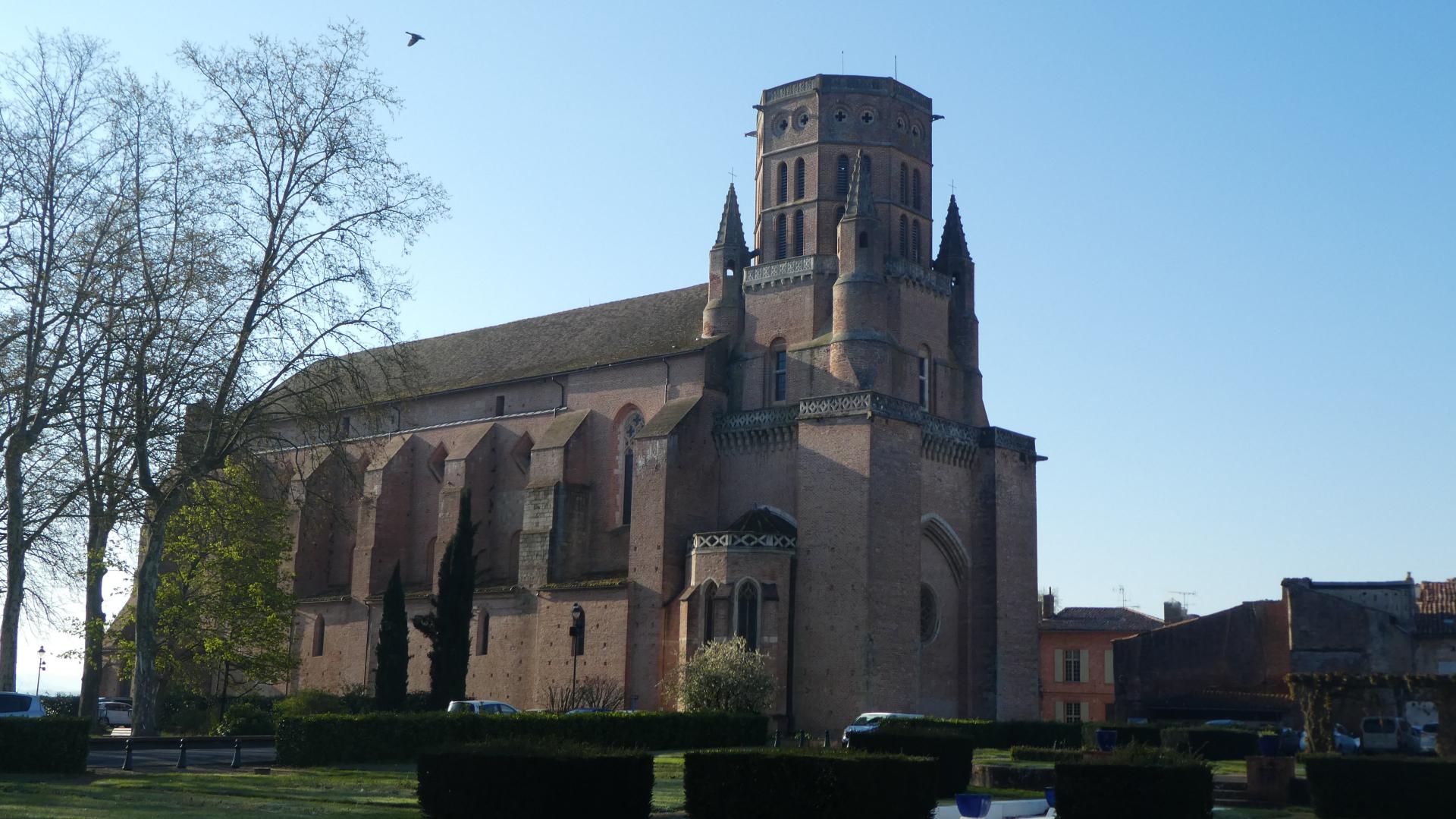 Ce bel édifice en brique de style gothique toulousain a été bâti en 1255. L'ouvrage qui surplombe l'Agout se caractérise par une nef unique bordée de chapelles, et à l'Ouest d'un puissant clocher-tour avec un portail monumental. Il abrite une table d’autel romane, et son buffet d'orgue en bois sculpté polychrome (1523) est un chef-d’œuvre de l'art de la Renaissance dans le Midi. Le Grand-orgue Cavaillé-Coll est installé en 1876.