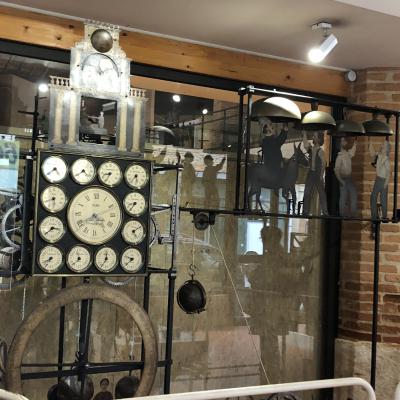 Toutes les horloges présentées sont en état de marche et égrènent leurs sonneries et mélodies, notamment une très grande horloge à Jacquemarts.