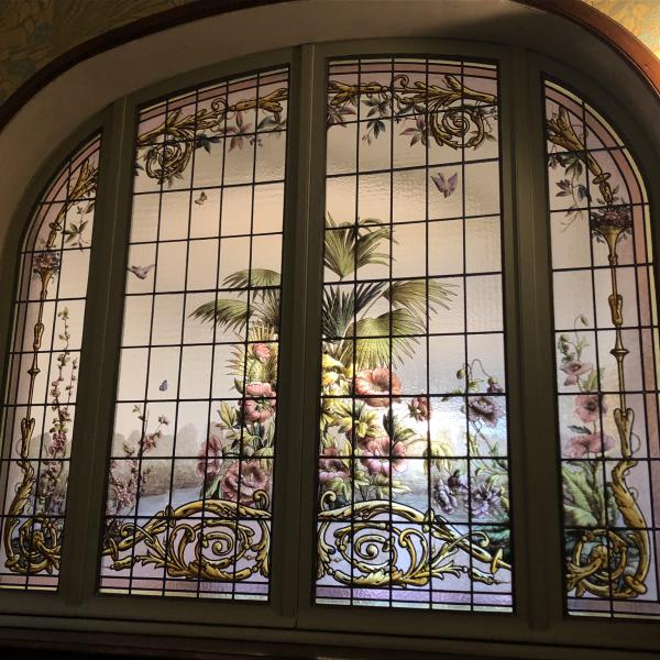 Vaste demeure à la façade blanche, elle se distingue par sa verrière et ses vitraux Art nouveau, dont le plus célèbre est inspiré par la Semeuse d'Eugène Grasset qui servit de monogramme à la librairie Larousse pendant prés de 50 ans avant d'être modernisé.