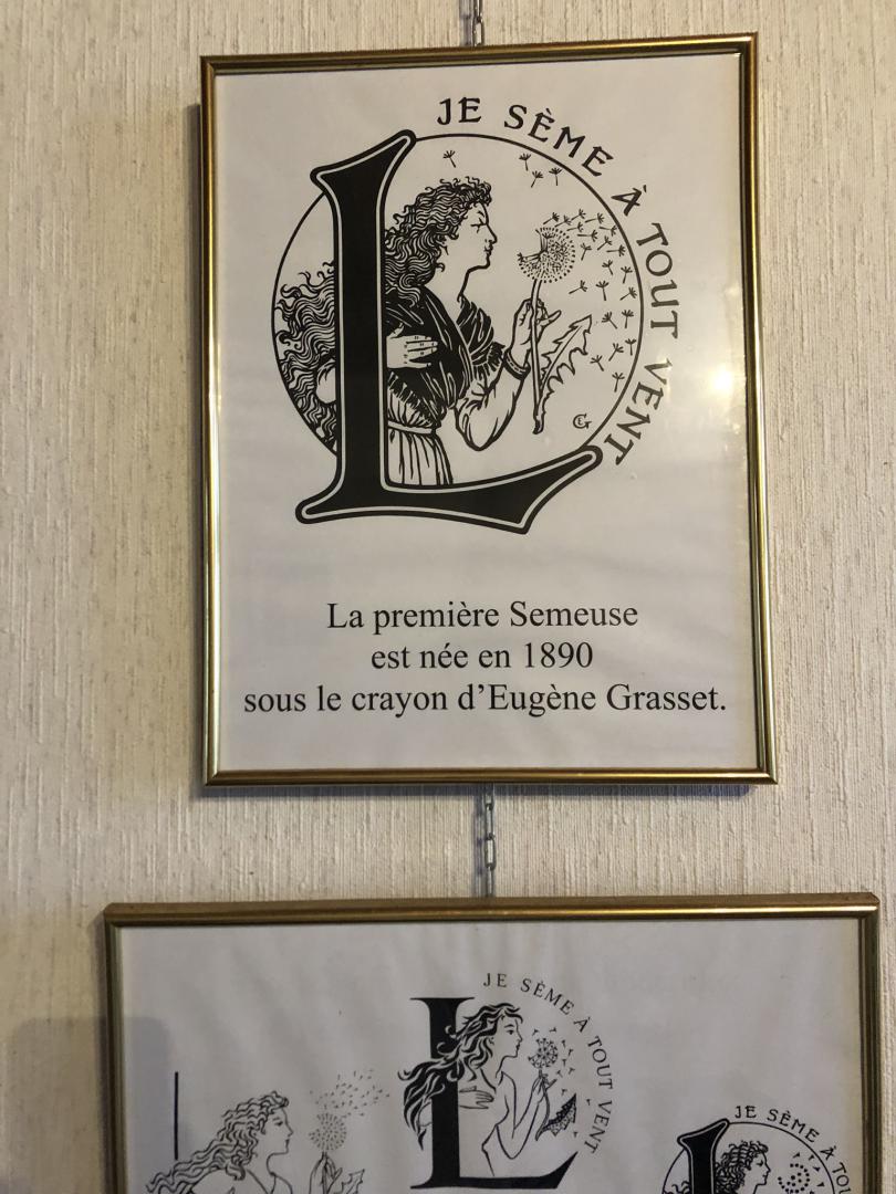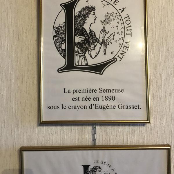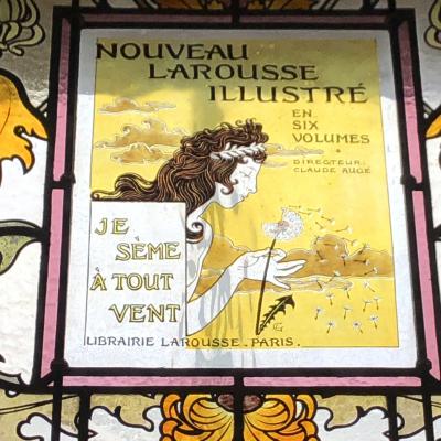 Sur le manteau de l'une des cheminées du rez-de-chaussée, on peut voir le dessin tel qu'il figure encore de nos jours sur la page de garde des dictionnaires Larousse.