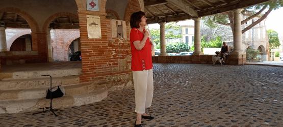 La balade contée a commencé devant l’Office du Tourisme d’Auvillar.